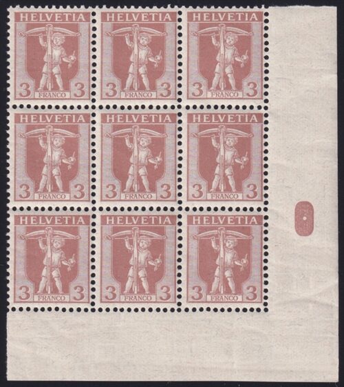Schweiz 1907 SBK Nr. 102 – 9er Bogenecke mit Pf. 1.09 postfrisch **