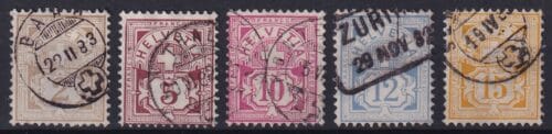 Schweiz Wertziffer Serie SBK Nr. 53 bis 57 gestempelt, weisses Papier